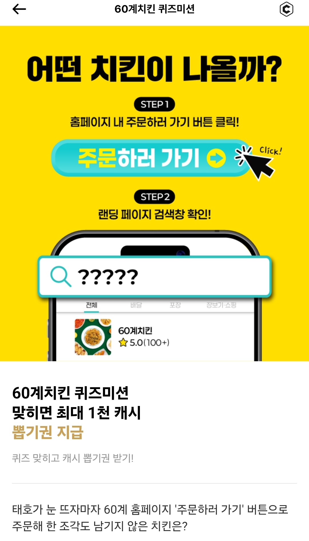 태호가 눈 뜨자마자 60계 홈페이지 '주문하러 가기' 버튼으로 주문해 한 조각도 남기지 않은 치킨은?