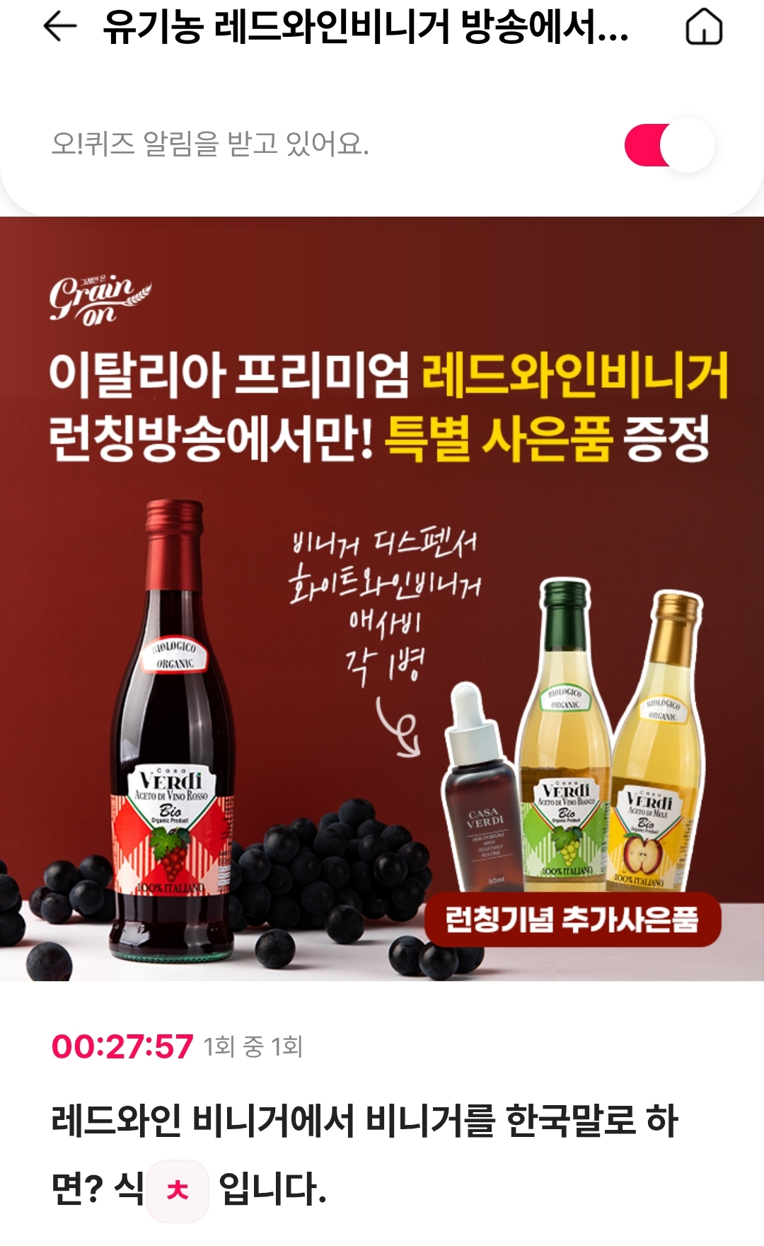 레드와인 비니거에서 비니거를 한국말로 하면? 식ㅊ 입니다.