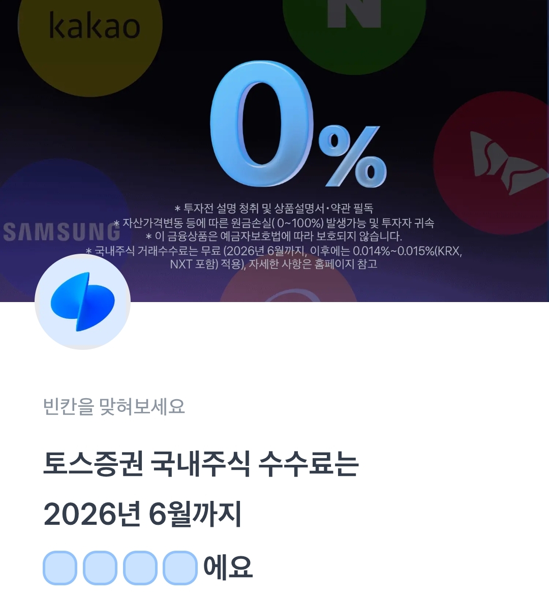 토스퀴즈 토스증권 국내주식 수수료는 2026년 6월까지 ㅇㅈㅁㄹ에요.